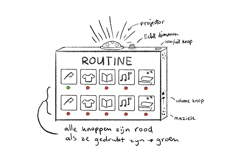 This is a team project about sleep. For this project we needed to design a screen-free interactive product that helps create an effective bed time routine for our target group. We were allowed to choose our own group so we chose young children with adhd.